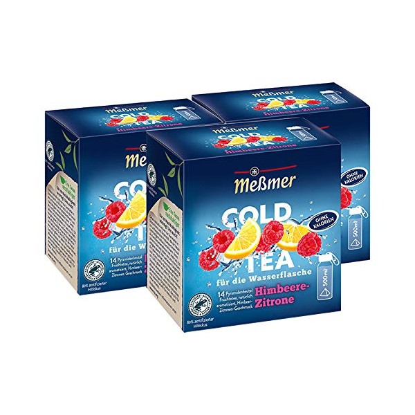 • Box contents: 3 x Meßmer Cold Tea raspberry lemon, 14 pyramid bags per pack