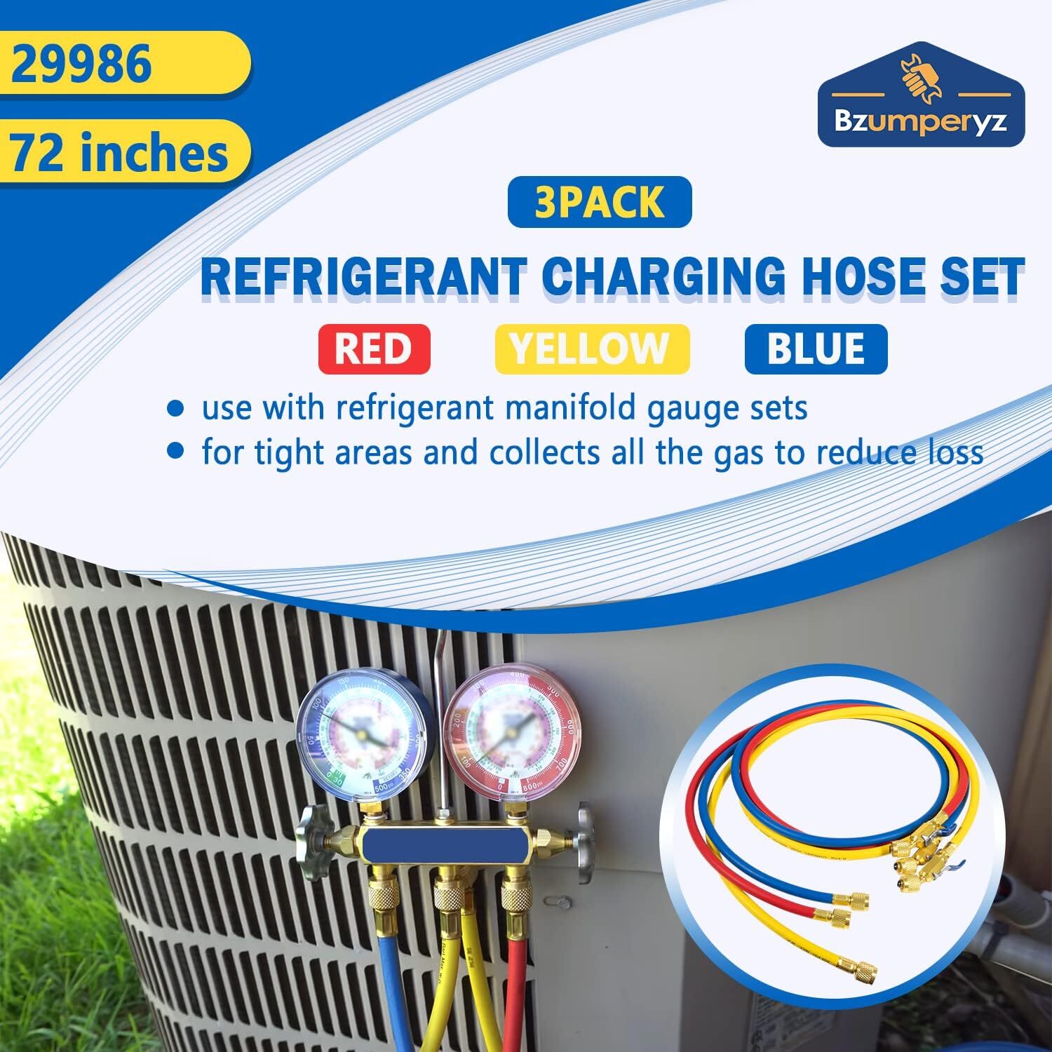 【Necessary Tool】 Upgraded refrigerant hose is a must-have tool for HVAC, car air conditioning maintenance, coolant or adding freon. For use with refrigerant manifold gauge sets, recommended for R-410A, also suitable for R-22, R-404A refrigerants.