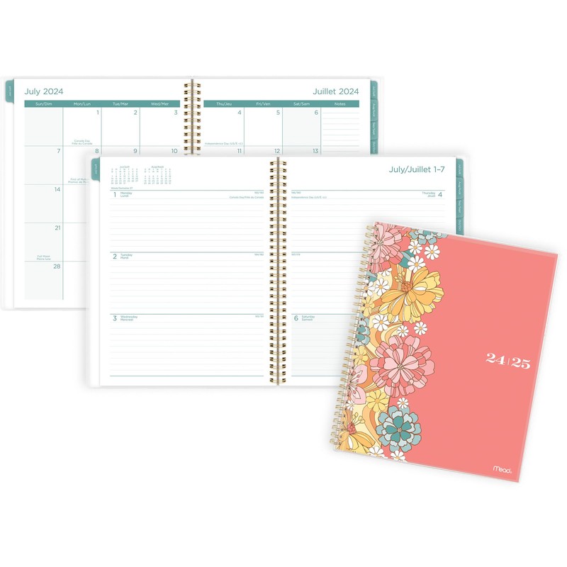 - Keep your schedule on track in style. The Mead Caprice Academic CYO Planner features a colour floral motif that pops against a coral background.
