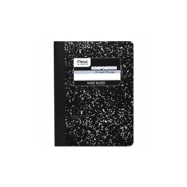 Mead Composition Book, Wide/Legal Rule, Black Cover, (100) 9.75 x 7.5 Sheets