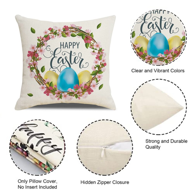- 【Trendy Designs】 The Easter linen pillowcases come with four different patterns, Easter Wreath, Easter bunny, Easter eggs, Easter basket all of which feature novel Easter elements that symbolize rebirth and new hope and are easy to match with various home decor.
