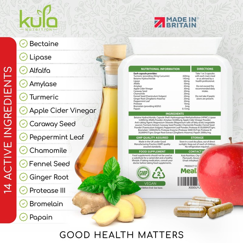 - THE KULA COMMITMENT - At Kula Nutrition we strive to produce the purest enzyme complex using only the finest ingredients. Our herbal enzyme supplement is all UK made to strict GMP standards for superior quality you can trust.