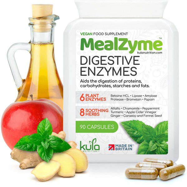 - GUT SOOTHING HERBS - Our MealZyme formula contains an amazing selection of digestion-boosting herbs including alfalfa, apple cider vinegar, ginger and peppermint for trapped gas relief.