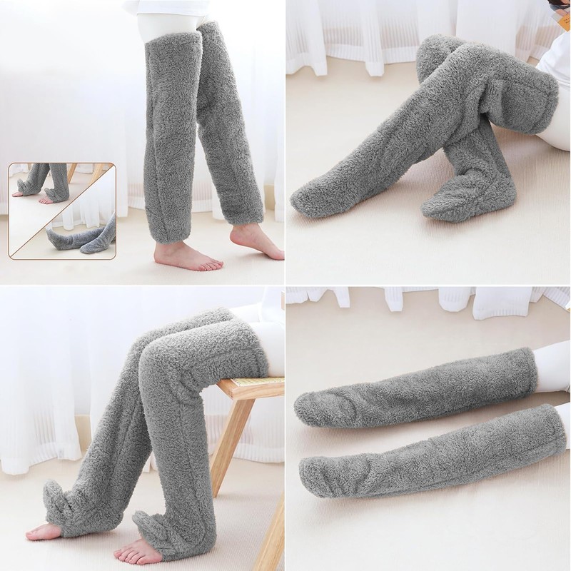 - ❄️🔥【Knee Highs】: Long and fluffy knee socks, like a fluffy hug on your legs, keep your feet, knees and thighs warm. The soles of the feet have openings and can be worn as open toe socks or footless socks. Please do not iron.