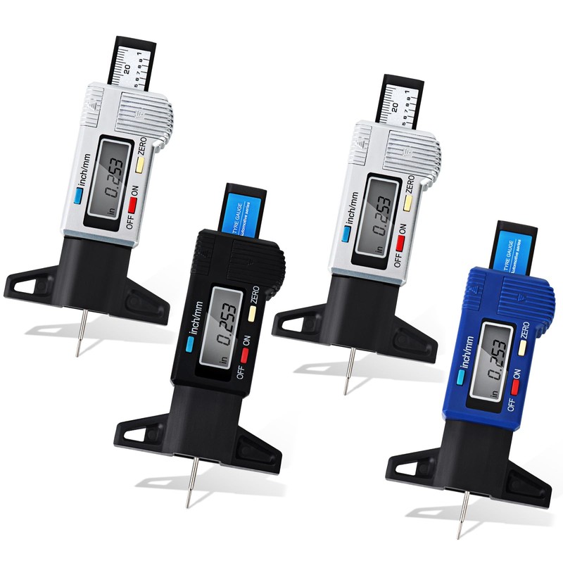 MEANLIN MEASURE 4PCS Digital Tire Tread Depth Gauge Tire Tread Depth Gauge LCD with Black Blue and Silver, Tire Tread Wear Gauge for Motorcycle Car Truck and Bus