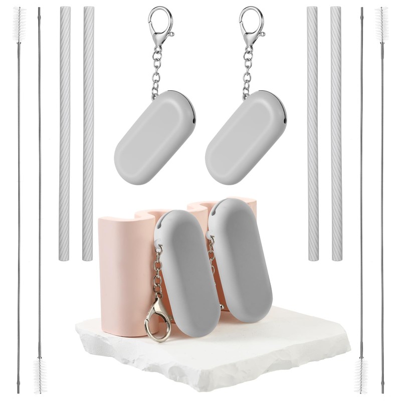 - Portable Case with Clips: these portable straws and cleaning brushes can be folded freely without deformation, and are easy to put into the silicone case; Each case has a clip, so it can be easily hung in bags, purses or waist, pockets, etc., it is more convenient to carry with you when you go out