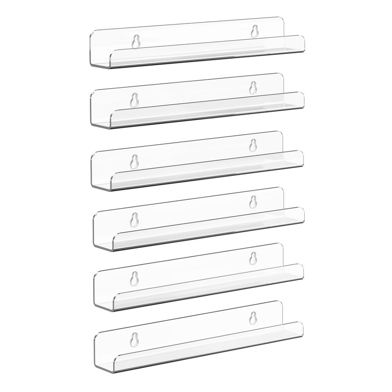 Meaocer Vinyl Record Shelf Wall Mount, 6 Pack 12 inch Clear Acrylic Album Record Holder Display, Kids Bookshelf, Floating Wall Shelves for Bathroom, Bedroom, Living Room, Kitchen