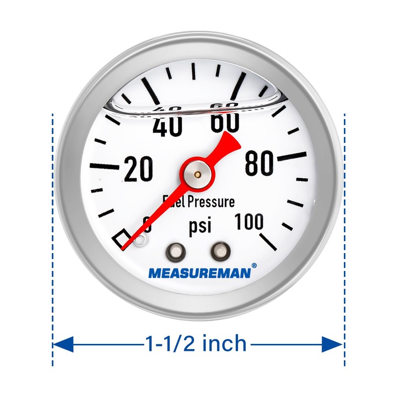 MEASUREMAN 1-1/2" Dial Size, Liquid Filled Fuel Pressure Gauge, 0-100Psi