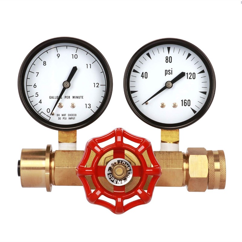 MEASUREMAN Water Pressure and Flow Test Gauge Assembly, Dual Measurement for Pressure (0-160 PSI) and Flow (0-13 GPM), 2-1/2” Dial, 3/4” NPT Solid Brass Gate Valve, with Filtering Screen