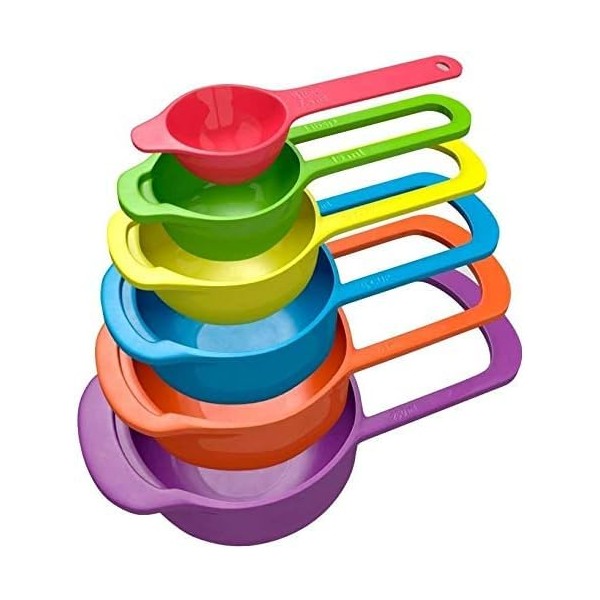 Measuring Cup and Spoon Set of 6 Food Grade Multicolor Space Saving Stackable Baking Tools