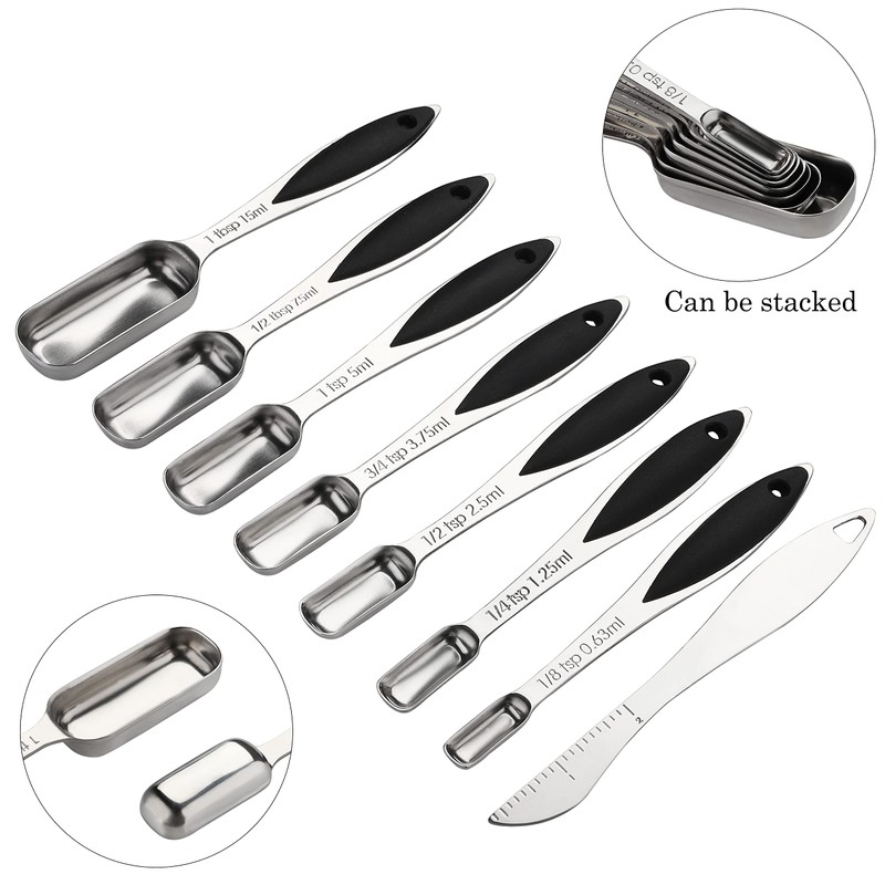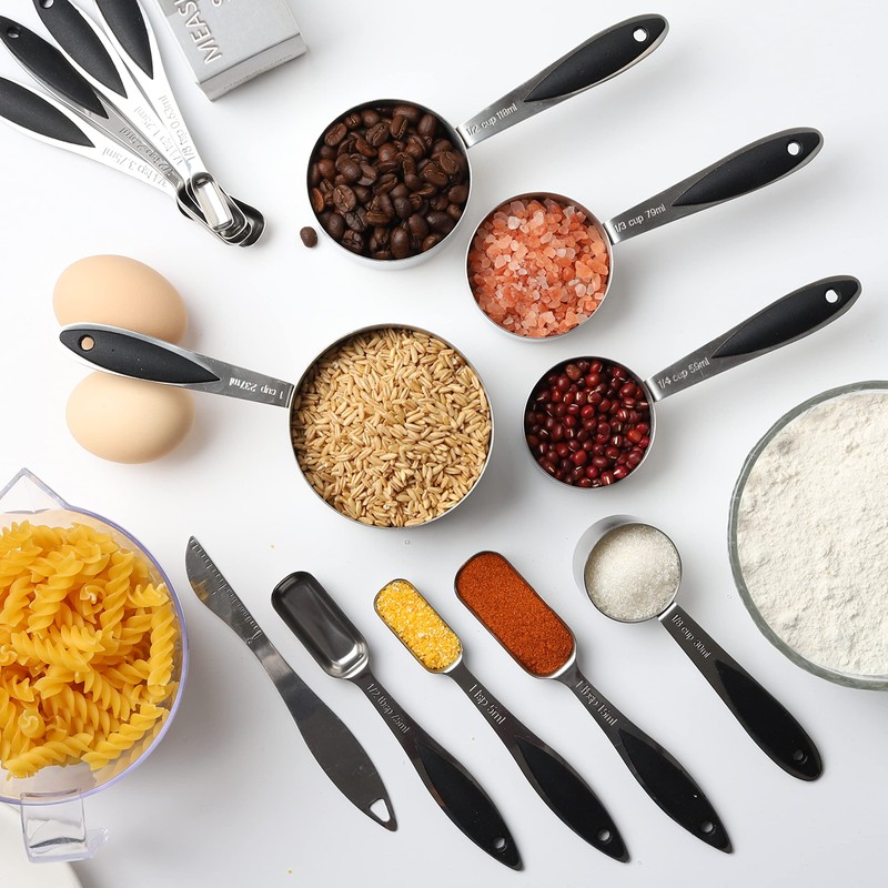 Material of Measuring Cups and Spoons:High quality stainless steel,be strong and durable.And easy to clean.