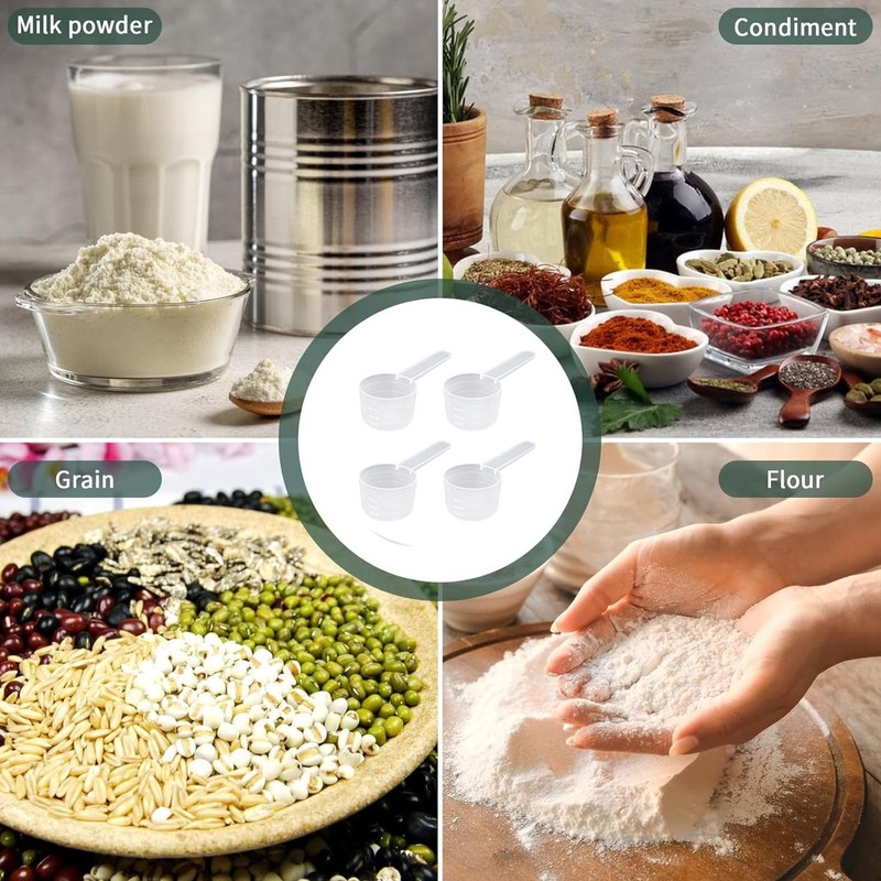 Measuring Cups Set, 40ml Plastic Scoops with Graduated Markings, 4-Piece Set for Kitchen and Fitness Powder