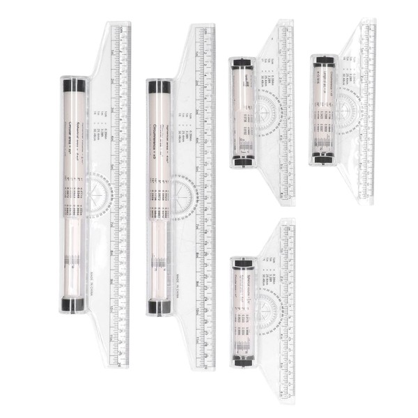 - 【CLEAR SCALE & FORMULAS】Every centimeter has a round hole for drawing circles and ellipses, built in roller, clear scale, easy to slide, not easy to skew, easy to observe. Meanwhile, there are various formulas on the roller, which can be calculated quickly in use. With 3 pieces 15cm parallel ruler, 2 pieces 30cm parallel total 5 pieces.