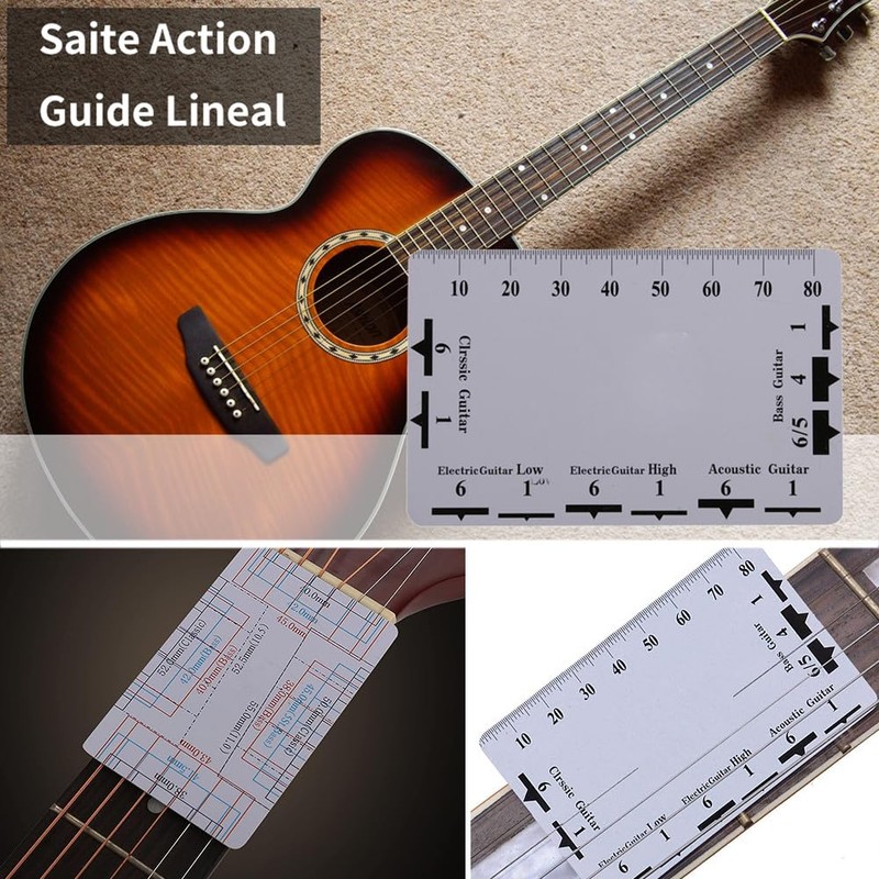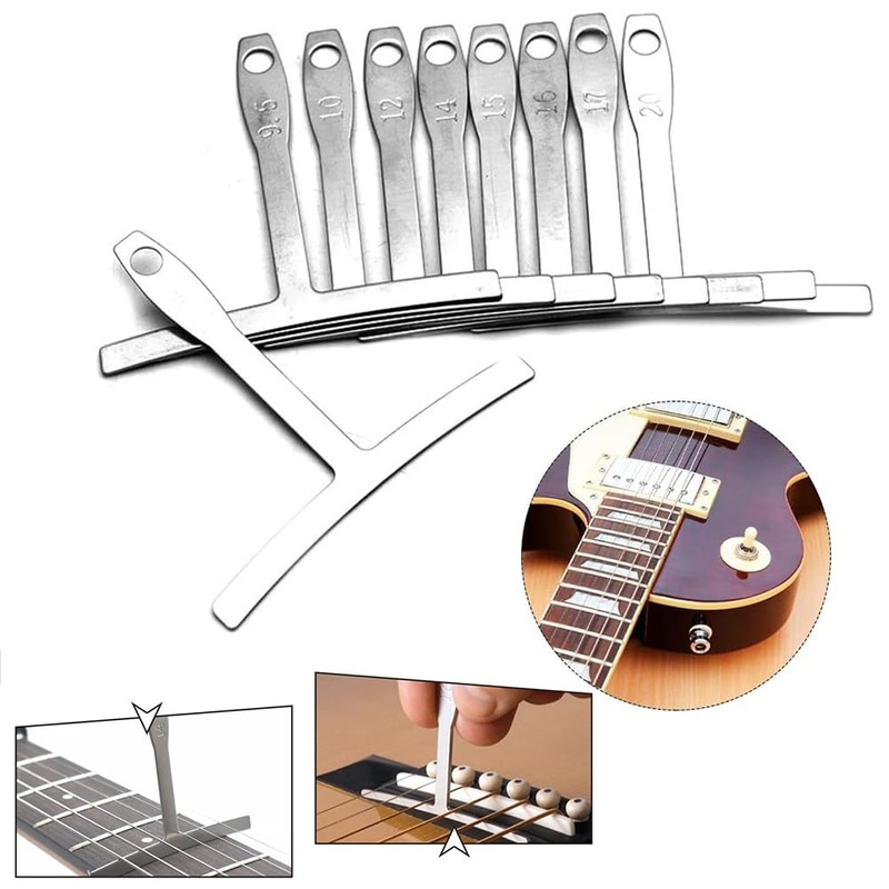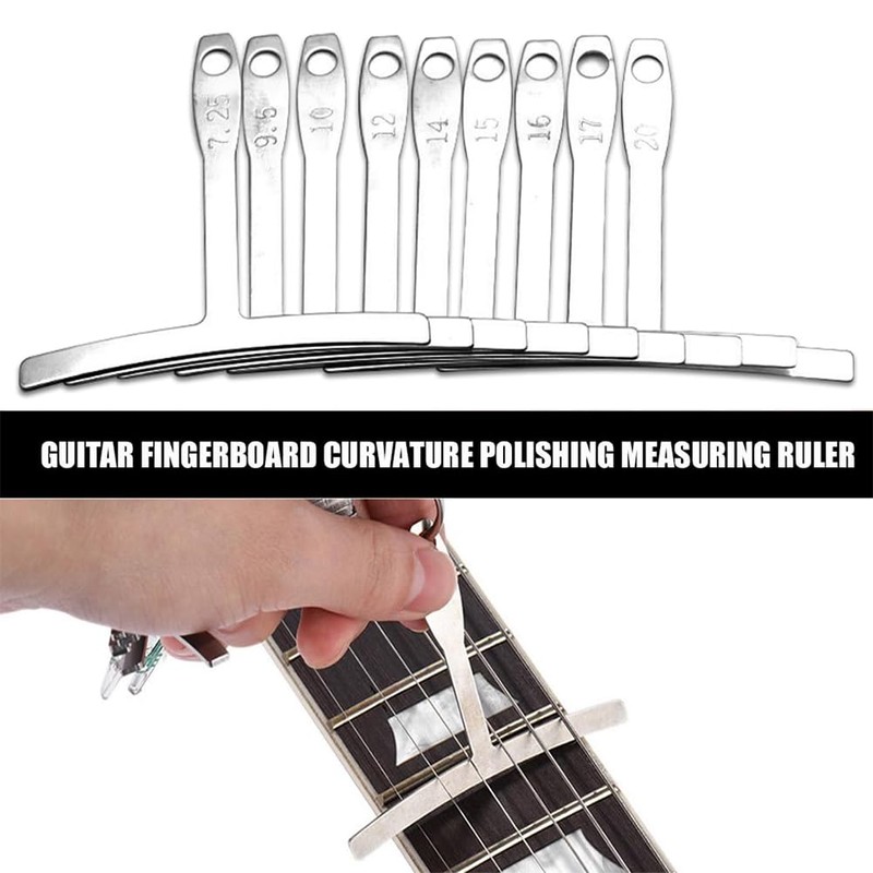 - ACCURATE MEASUREMENTS The set includes a string altimeter and nine T-shaped guitar rulers for accurate measurements of different guitar dimensions. The radius gauge provides durability and prevents scratches on the fretboard.