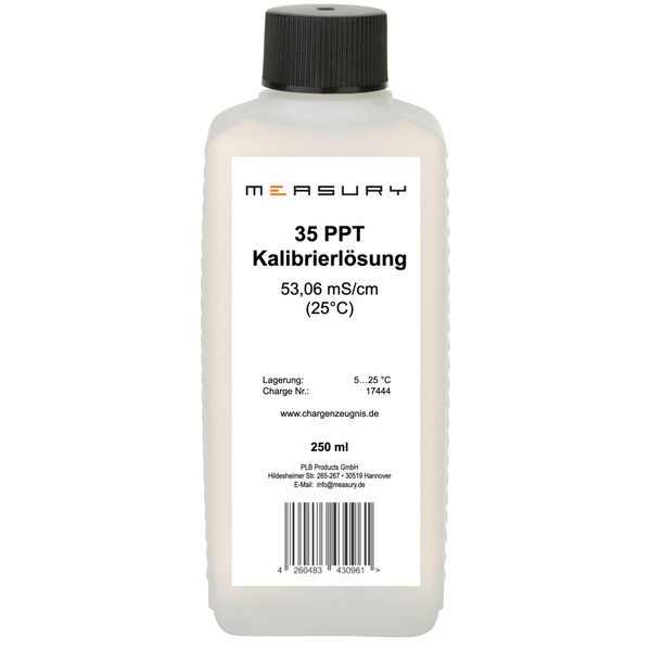 Measury 35 PPT Calibration Solution - Made in Germany, Salinity Reference 250 ml, Calibration Fluid 53.06 mS/cm NaCl