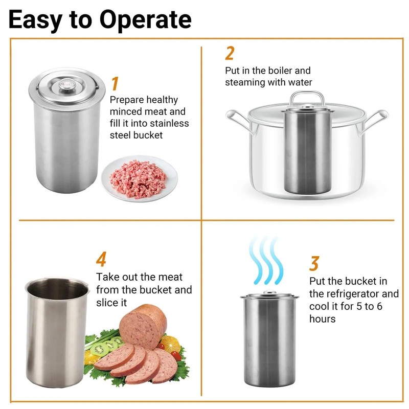 - 1. WIDE APPLICATION: Ham maker is suitable for restaurants, canteens, home kitchens, etc. With this meat press tool, you can make a variety of deli meats at home, and you can experiment with different types of meat, pork, chicken, and more. Make a healthy additive free mince pie for your family