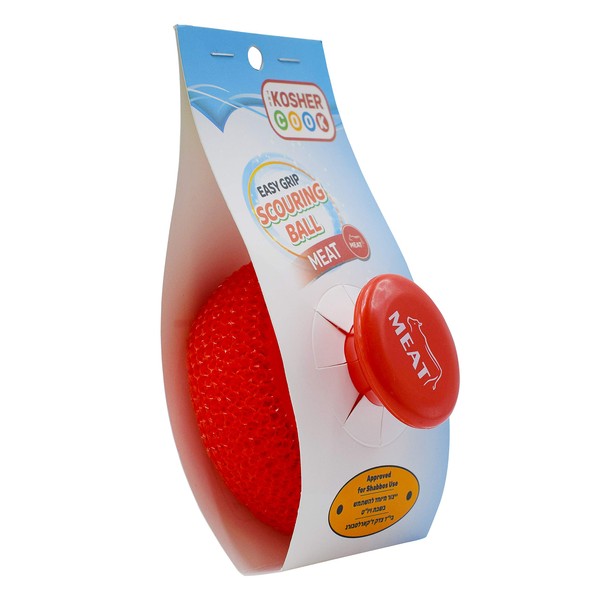 Meat Red Scouring Pad with Comfortable Handle – Ergonomic Easy Grip Dishwashing Cleaning Sponge Brush – Color Coded Home and Kitchen Accessories by The Kosher Cook