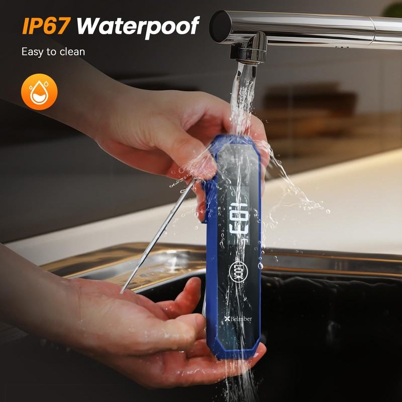 - 【Cool design and IP67 Waterproof】This instant read meat thermometer looks cool design, technology pulls full, boasts IP67 waterproofing, allowing you to wash it fearlessly without worry about water infiltrating the probe.
