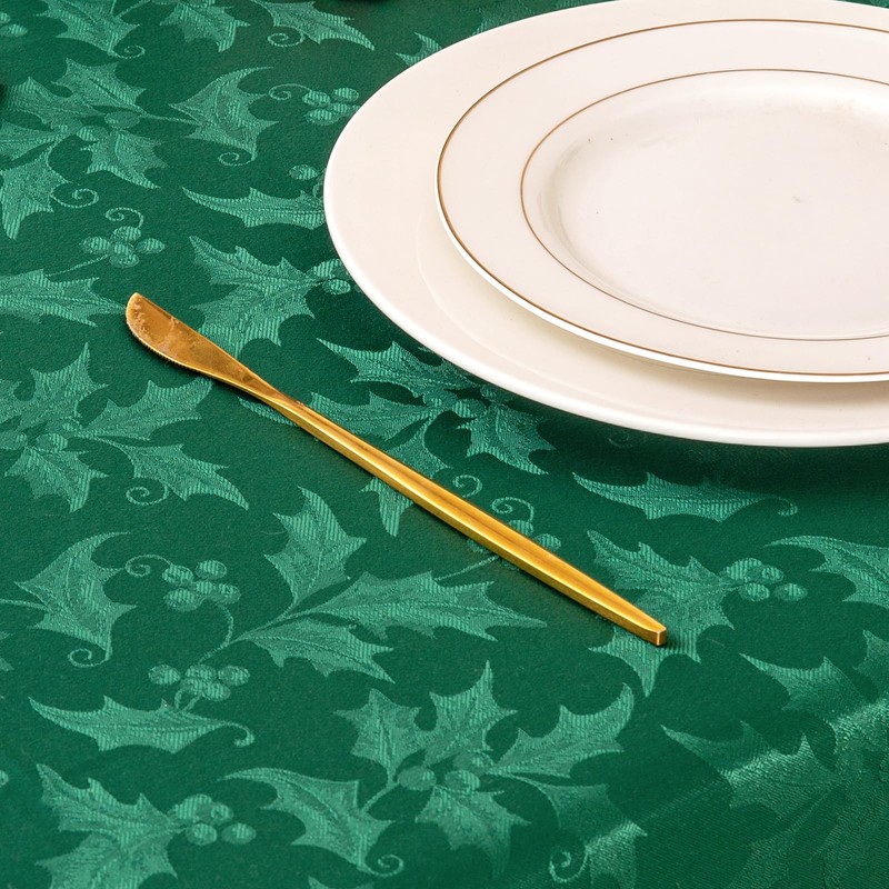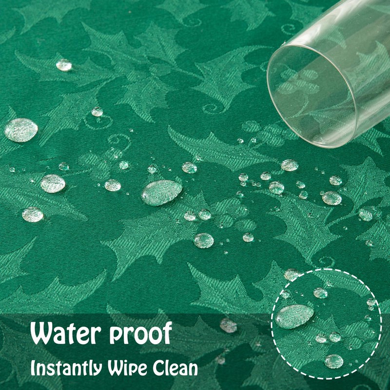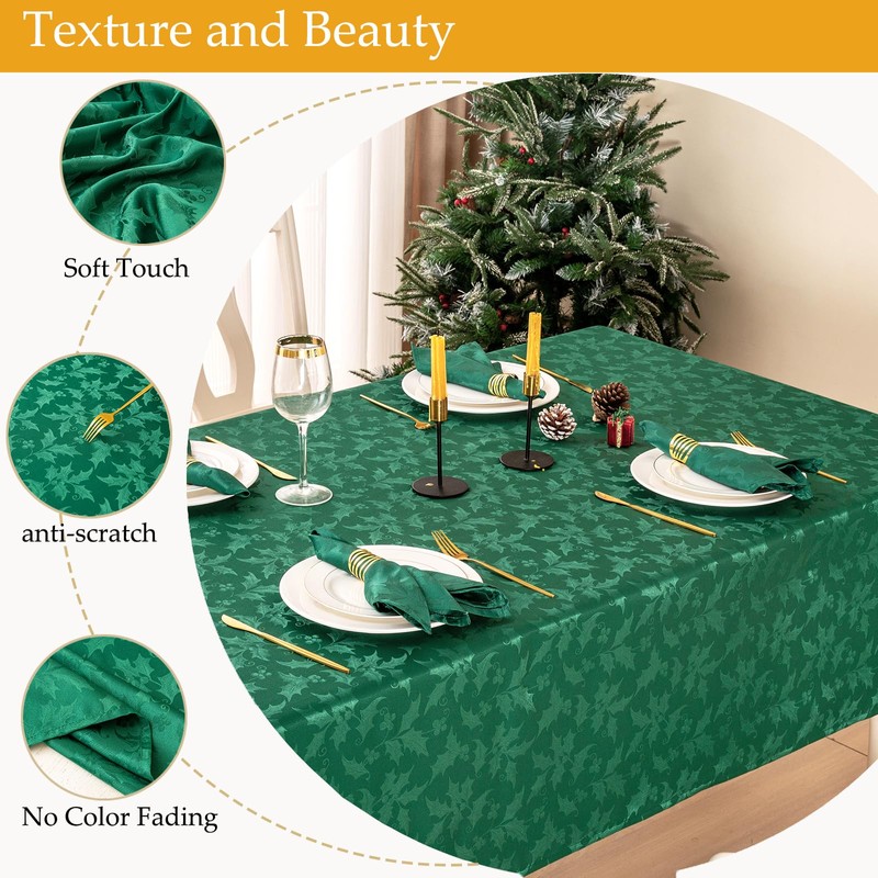 - Christmas Greenery: This green jacquard tablecloth features a holly berry pattern that seems to transport you to a silent, snowy night, and these patterns twinkle like stars in the emerald green night sky, creating a magical Christmas world for you.