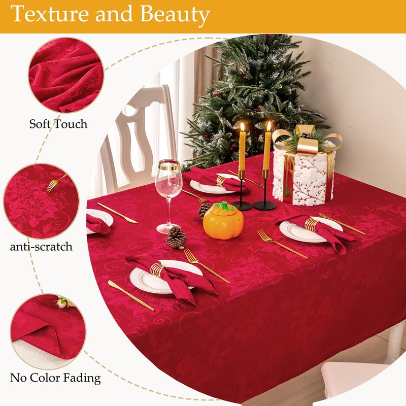 - Yuletide Vigor: este mantel floral jacquard con flores de invierno en plena floración, te transporta a un jardín de invierno, añadiendo un toque de belleza natural a nuestra Navidad. La belleza única hace que tu mesa sea el foco de la envidia de los invitados.