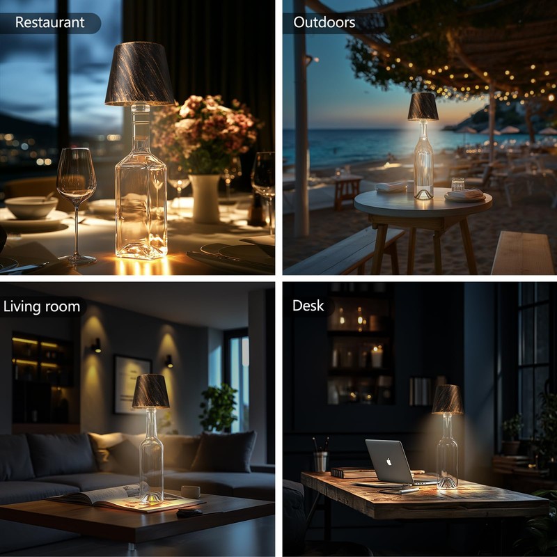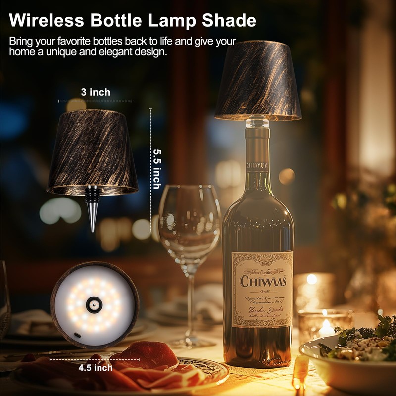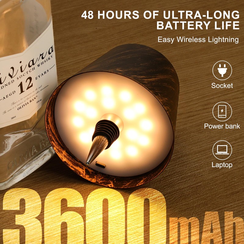 Mebaraul Wireless Bottle Lamp, 3600mAh Rechargeable Cordless LED Table Light with 3-Color Dimming for Bars, Dining, and Bedrooms