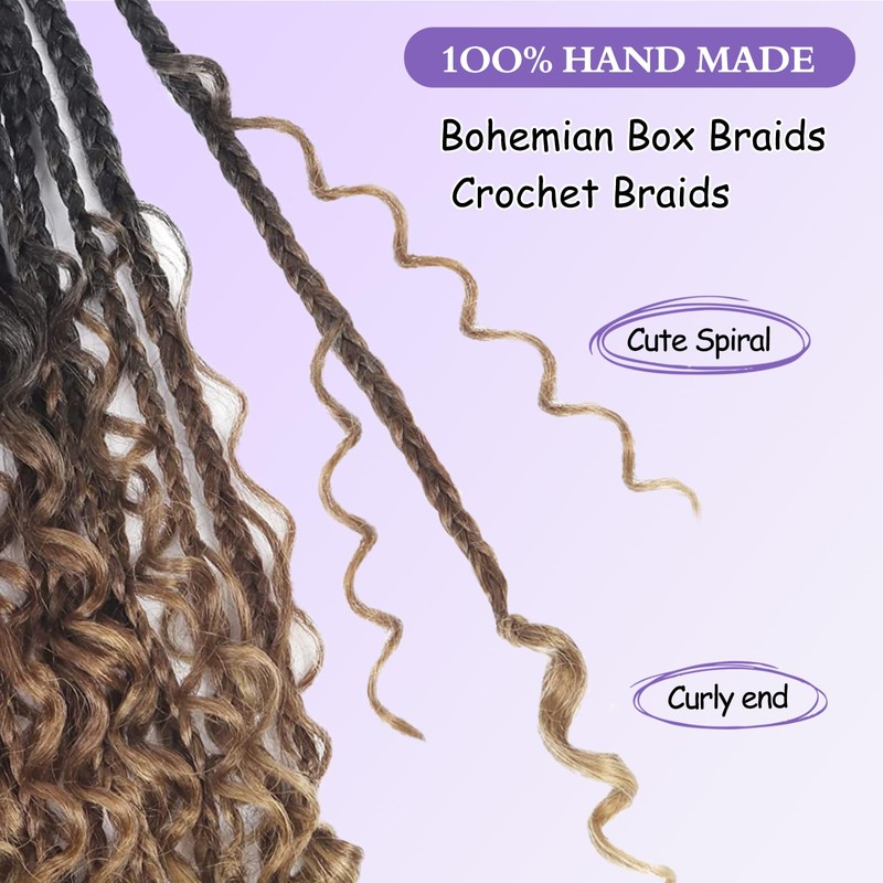 - Boho Braids Crochet Hair Install :crochet box braids with curly ends , pre looped and pre twisted , easy to pull the crochet braids through ,save money and be efficient.