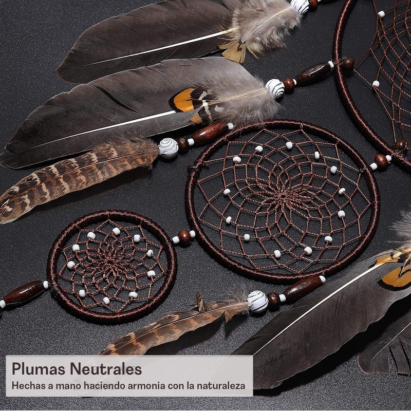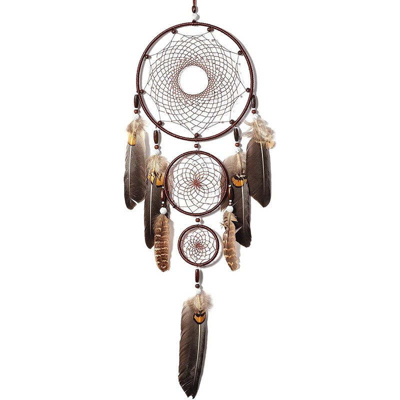 - UN ESTILO ORIGINAL: El diseño original hecho a mano de 3 anillos, diseño de atrapasueños de tres círculos con plumas marrones, que representan todo va sin problemas. Bendiciones de buena fortuna para todos.