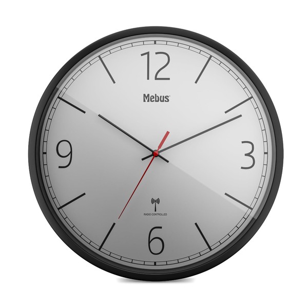 Mebus Modern Radio-Controlled Wall Clock, Precise Radio-Controlled Clock, Black/Grey, 30 cm Diameter