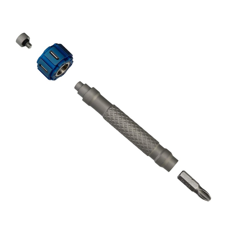 • 【Features】:Portable Titanium multifunctional screwdriver set; Bearing on top, allows tool to be used for fun; Compatible with 1/4” Hex Key; 33 different screwdriver bits included; Vial slots on the top (vials are optional).