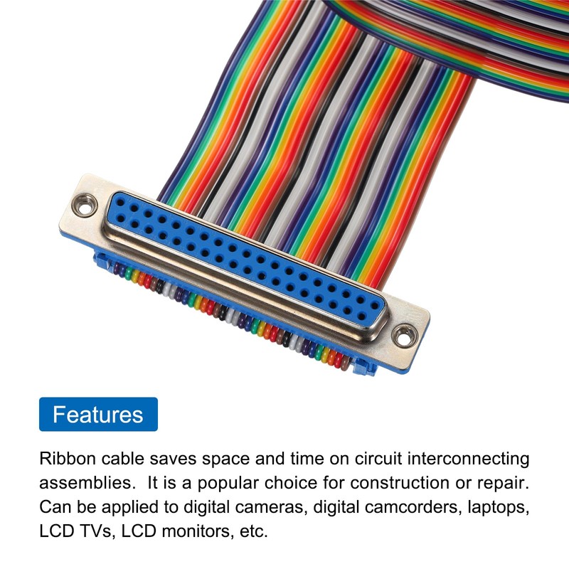 • In the package of: 1 Pcs x IDC Rainbow Wire;Screws x 4 Pcs; Pin number: 37 Pin; Pin Pitch: 2.54 mm; Wire Diameter: 0.9mm; Total Size: 39.4 Inch x 1.8 Inch (L*W); Connector Type: DB37 Female to DB37 Female;
