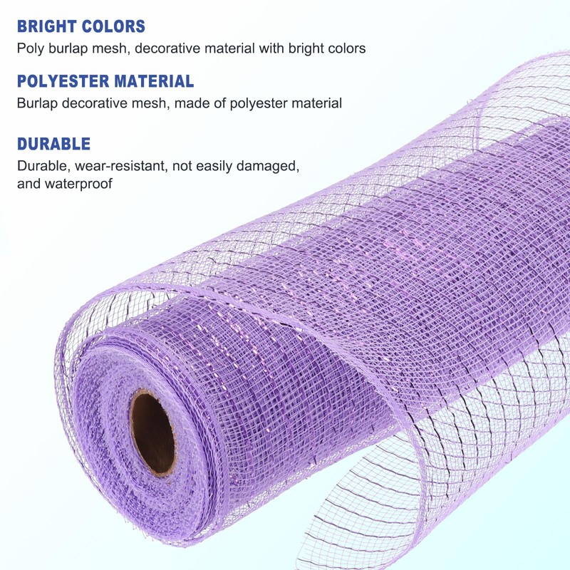 - Poly burlap mesh, decorative material with bright colors, used to decorate wreaths, bouquets, etc. in spring, summer, and fall, adding bright colors and natural texture; Burlap decorative mesh, made of polyester material, which is durable, wear-resistant, not easily damaged, and waterproof. Floral burlap mesh roll can be used outdoors in gardens, lawns, and other areas; Poly burlap decorative mesh can be cut, folded, and packaged for easy use, especially suitable for gift wrapping