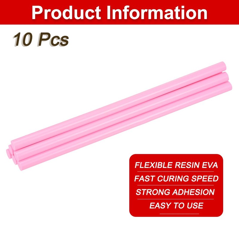 - Glue Sticks For Glue Gun; Material:EVA; Color:Dark Pink; Operating temperature:150℃; Size:11mm x 250mm/0.4 inch x 9.8 inch(D*L); In the package of:10 Pcs x Hot Melt Adhesive Glue Sticks