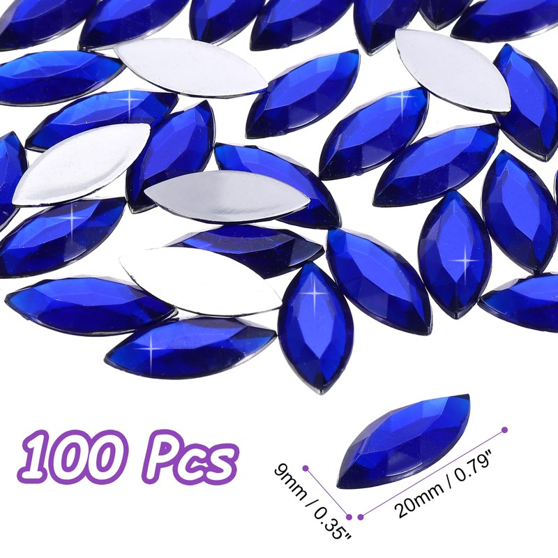 - Size: 20 x 9 mm / 0.79 x 0.35 Inch (L*W); Color: Dark Blue; Material: Acrylic; In the package of: 100 x face gems