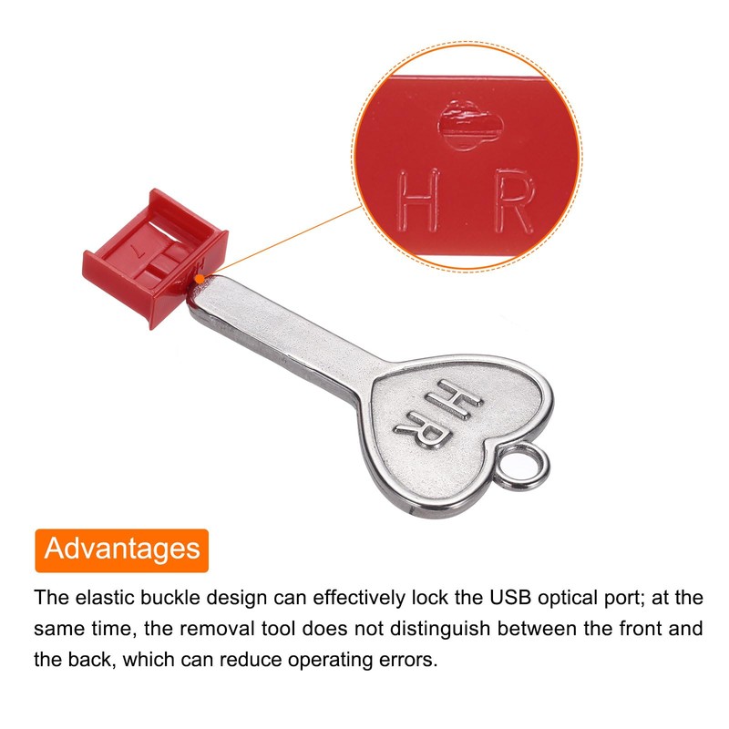 • Package contains:12 x USB Port Blocker (Material: PC)1 x Coded Key(49mm/1.92inch) Length*Width*Height: 13*10*5.6mm/0.51*0.39*0.22 inch; Color: Red