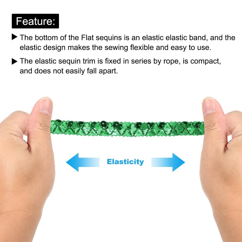 - The sequin strip provides here:Color:Green; Material: PVC; Size: 1.5cmx 13 meter / 0.6 inch x 14 Yards(W*L);There are many colors and sizes for you to choose