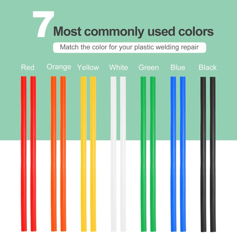 - Heat-activated fusion creates stronger weld than original material;Low-melt formula achieves working viscosity 30% faster than generic rods;Factory-matched color tinting maintains visual consistency after restoration;These welding rods are color matched to many applications such as repairing plastic water tanks, canoes and kayaks, and are also used to repair windshield washer bottles, radiator overflow boxes, ATV fenders, boats, RV water tanks, off-road vehicle fenders, gas tanks