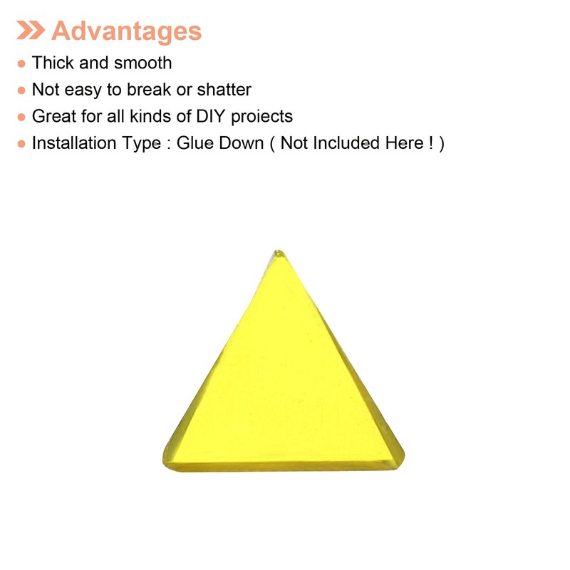 - In the package of: 1 Set x Stained glass mosaic(290 Pcs approx.);Color: Bright Yellow; Size: 14mm(1/2 Inch approx.); Thickness: 3mm; Weight: 200g/0.44 lb; Finish Type: Polished; Installation Type: Glue Down(Not Included Here!); Material: Glass;