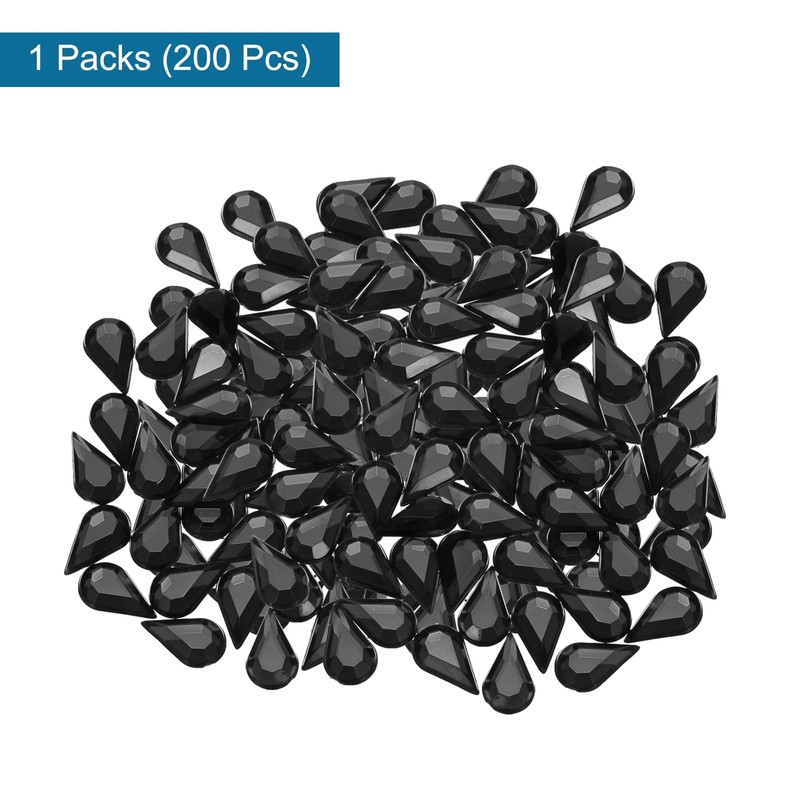 - Size: 6mm x 10mm/0.24" x 0.39" (W*L); Thickness: 1.8mm; Material: Acrylic; Color: Black; Shape: Teardrop; In the package of: 200pcs x Flat back acrylic gemstone in 1 pack