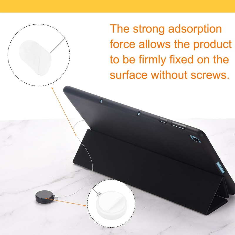 - This Retractable Cable Lock with Adhesive Patch features a retractable cable for easy length adjustment, with adhesive patches on both ends used to securely attach the device to the desktop and other surfaces. Mainly used in offices, libraries, cafes, etc., it can fix one's own mobile devices such as laptops and phones on the desk to prevent theft.
