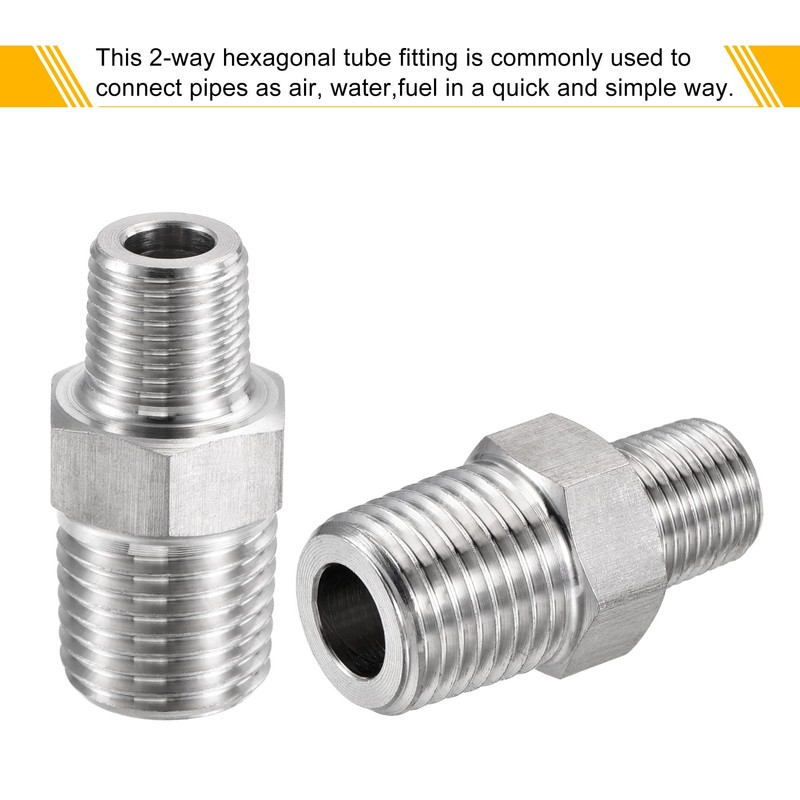 This 2-way hexagonal tube fitting is commonly used to connect pipes as air, water, fuel in a quick and simple way. Sealing tape is suggested for connecting with a better effect (not included here).