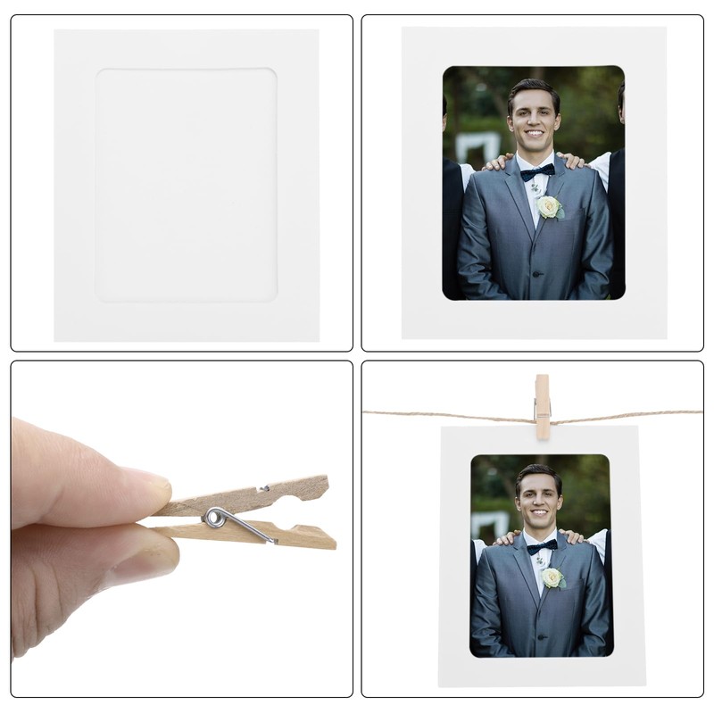 Package Includes: 30PCS x Paper Photo Frames & 30PCS x Clips & 3PCS x Strip