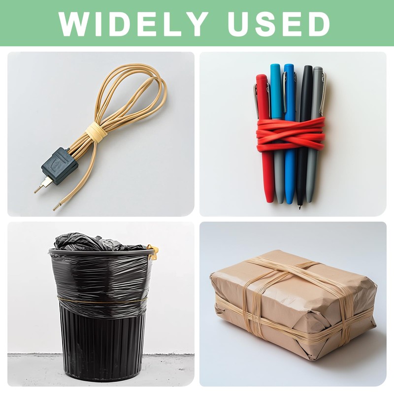 - Silicone rubber bands are mainly used for bundling various items, such as paper, pens, wires, data cables, etc. Also can be used for rings, packaging, decoration, or bundling small wallets and lens straps, jars, small notebooks, tiny outdoor equipment, mini containers, bookmarks, thin boxes. With a wide range of uses, making your outdoor activities convenient and household items organized.