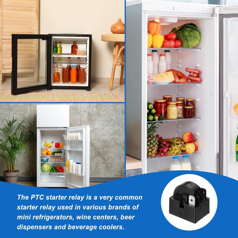 - The PTC refrigerator starter relay can help the refrigerator compressor start smoothly and provide additional starting force. The PTC starter relay is a very common starter relay used in various brands of mini refrigerators, wine centers, beer dispensers and beverage coolers.