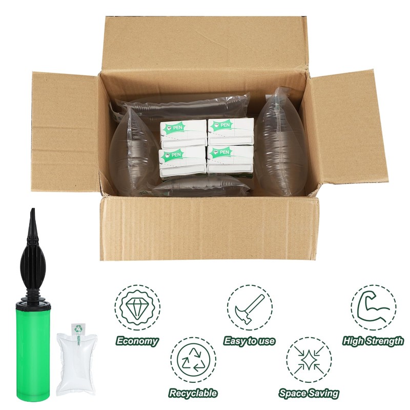 Air bags for packing is easy to use, it can be inflated just by a normal small pump that comes with, or you can inflate with your electric pump or bicycle pump. Air inflatable bag is flat before inflation, easy to store, and convenient to carry, save much space.