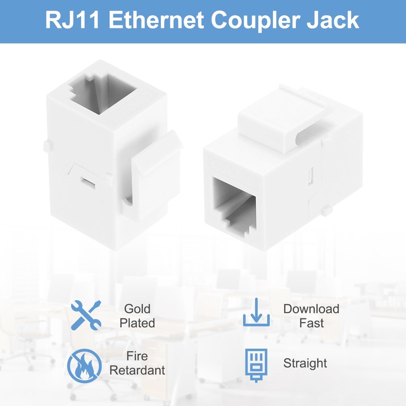 - RJ11 CAT3 coupler is a network connector that connects to Cat6 Ethernet lines through the RJ11 interface, which can extend the length of the wire and support high transmission efficiency.