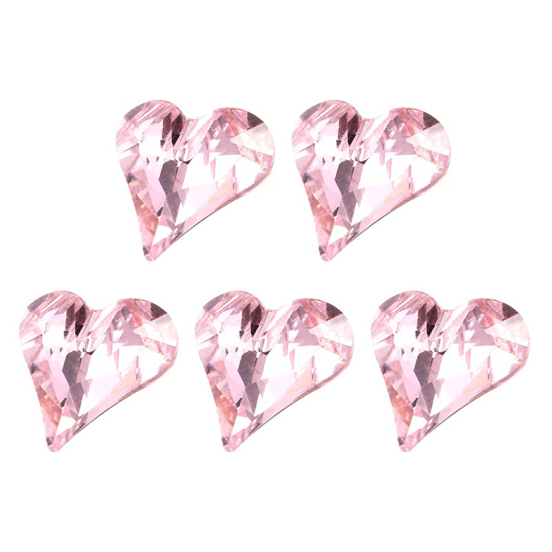 MECCANIXITY 5 Pcs 3D Heart Pink Nail Rhinestones 12x13mm K9 Glass Crystal Rhinestones Pointed Back Crooked Heart Gems for Nail Charm Art DIY Craft