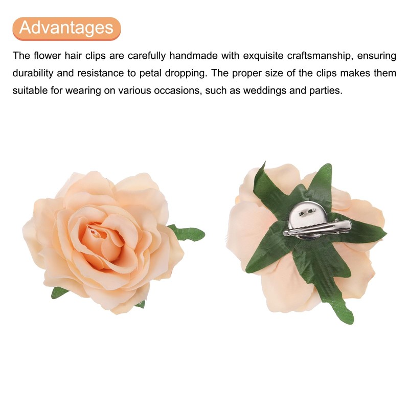 The flower hair clips are carefully handmade with exquisite craftsmanship, ensuring durability and resistance to petal dropping. The proper size of the clips makes them suitable for wearing on various occasions, such as weddings and parties.