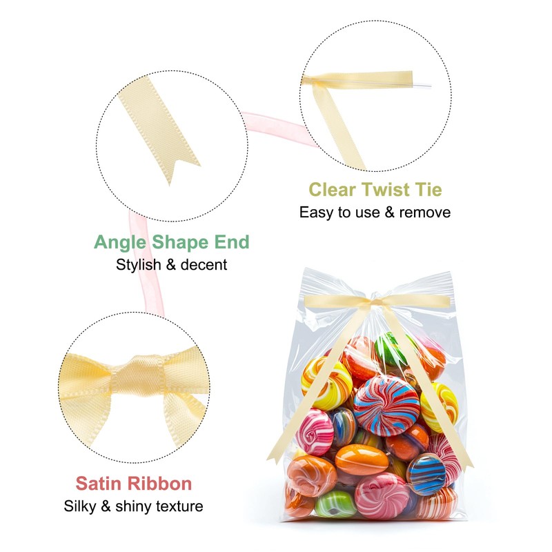 MECCANIXITY 50 Pcs 5x7 Twist Tie Bows Satin Ribbon Bows Wrapping Bows for Craft DIY Sewing Wedding Decor Birthday Party Treat Bags Champagne