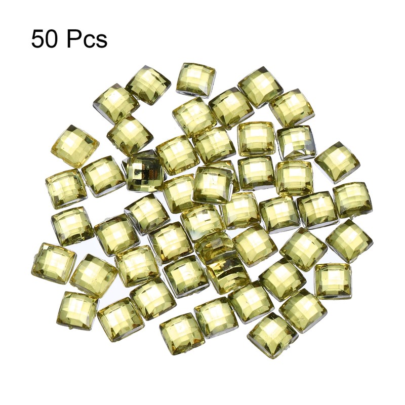 MECCANIXITY 50 Pcs Acrylic Flat Back Rhinestones 8mm Square Artificial Gemstone for Crafts Face Painting Costume Jewelry Making Light Yellow