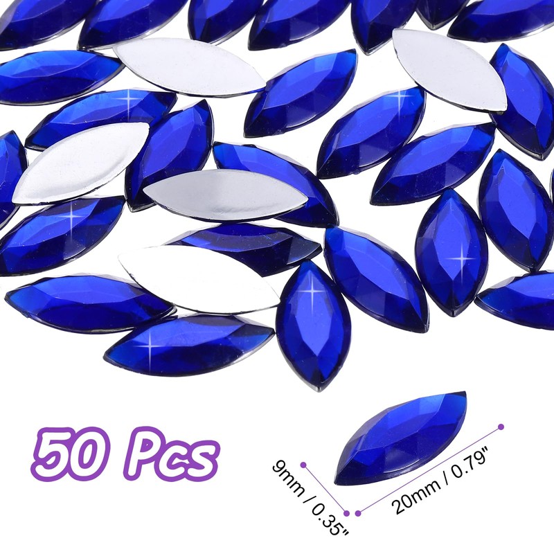 - Size: 20 x 9 mm / 0.79 x 0.35 Inch (L*W); Color: Dark Blue; Material: Acrylic; In the package of: 50 x face gems